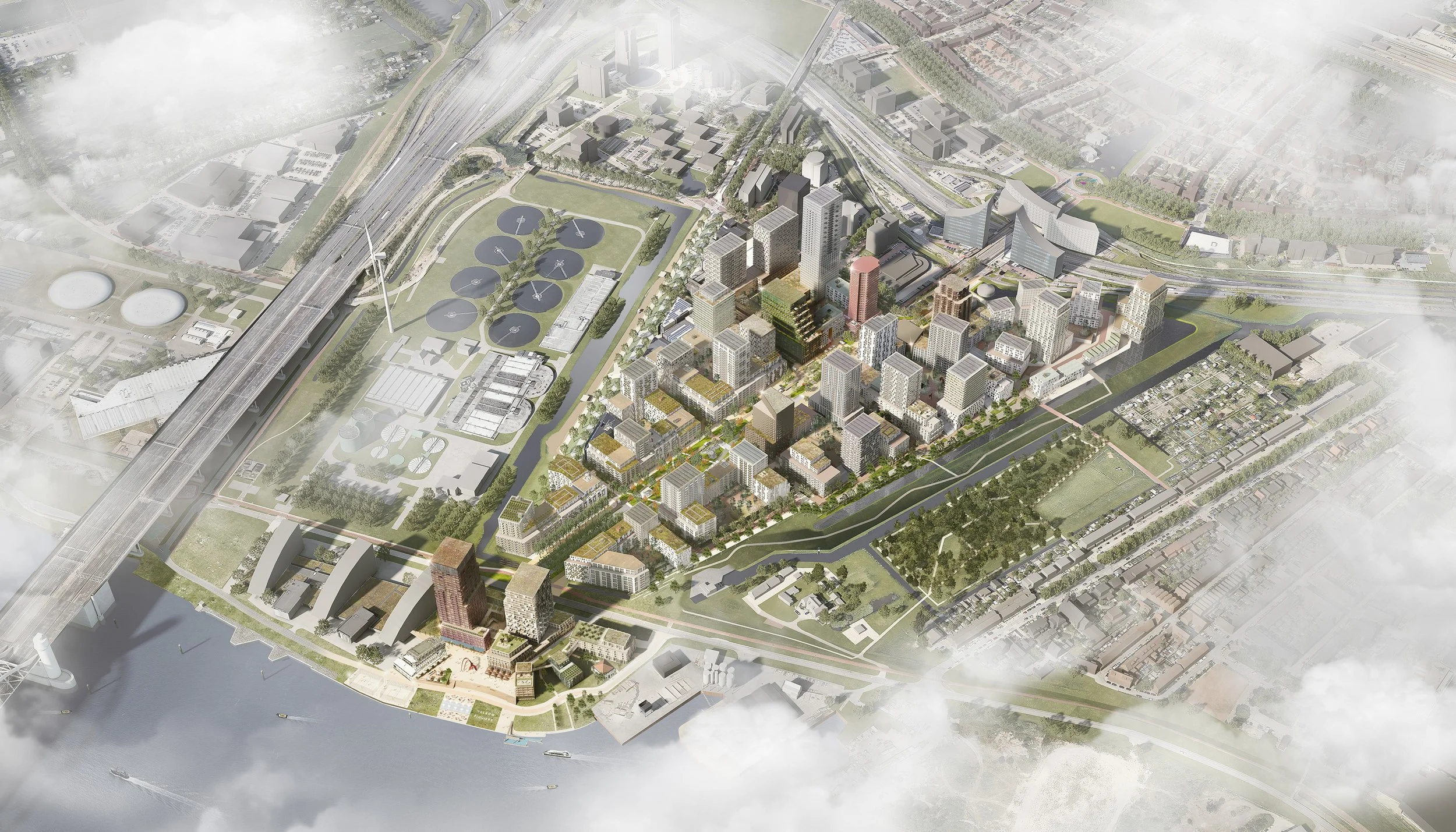 βEen mooie opgave waar belangen vanuit ontwikkelaars, architecten en gemeente samen worden gebracht. En waarbij de samenhang tussen de gebouwen en omgeving bewaakt wordt. We zijn er trots op dat we hebben kunnen zorgen voor extra vergroening in het gebied, waarbij ca. 1000 bomen zijn geplant, de oevers natuurvriendelijk zijn gemaakt en er plannen om nog meer groen toe te voegen.β