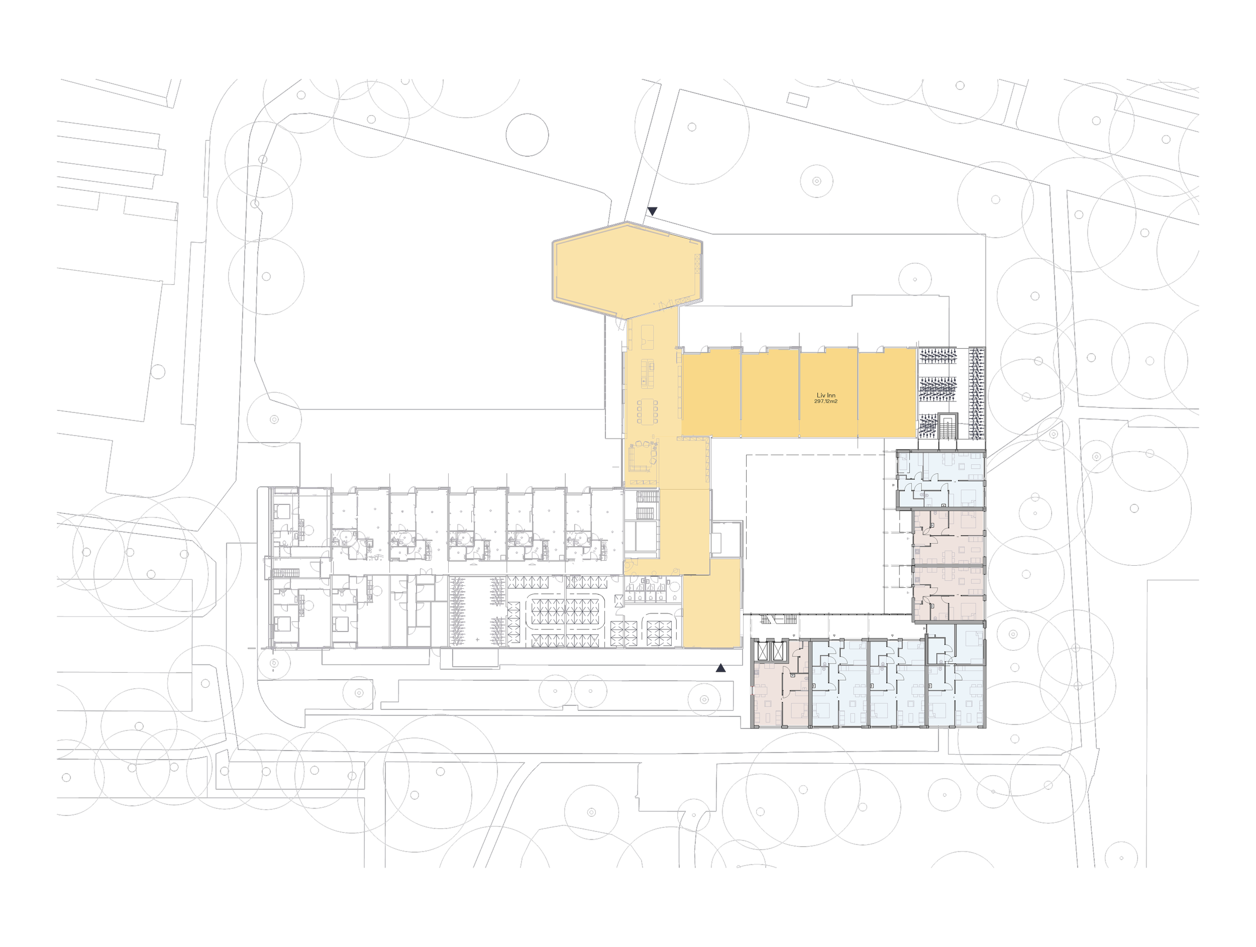 De kracht van de Vijverhof ligt in het collectieve karakter. In de plint bevinden zich diverse ontmoetingsplekken onder de naam Liv Inn. Elke Liv Inn heeft een eigen, lokaal karakter en is samen met bewoners ontwikkeld.